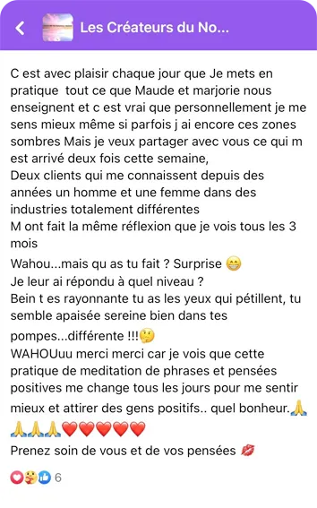 Maude et Marjorie transmettent leur mode de vie enseignée par leur mère qui a eu une maladie en phase terminale avant de se connecter à la Magie de son pouvoir mental et de guérir miraculeusement. Elles accompagnent les personnes désireuses de se mettre en action pour redevenir maîtres de leur vie et enfin créer leur propre Magie!