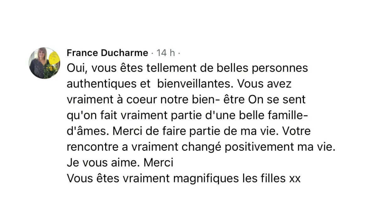 "Pour plusieurs personnes nous devenons leurs anges, leurs calinours, les aidant concrètement et sincèrement à se transformer."
